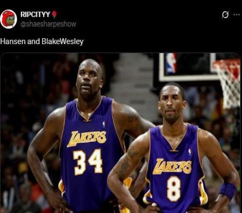开拓者自媒体晒出科比与奥尼尔的合影感叹:今天的布雷克·韦斯利和杨瀚森!