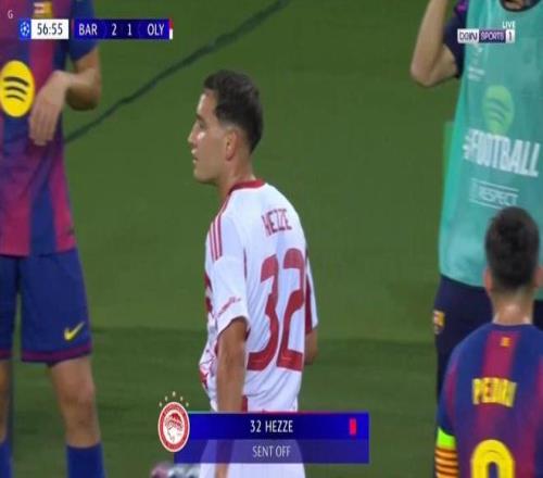巴萨61十人奥林匹亚科斯费尔明戴帽拉什福德双响赫泽染红引争议