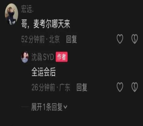 有球迷询问广东队新外援麦考尔的经纪人,问什么时候到队。这位经纪人给出明确回复,就是全运会后。